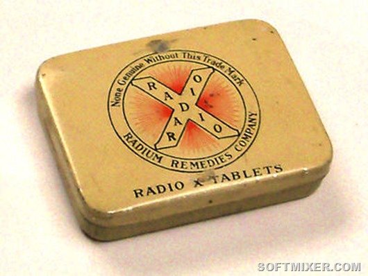 Вполне естественно, что маркетологи тех лет не преминули воспользоваться манящей возможностью. Поначалу на рынке появлялись бренды, спекулирующие на броском названии, и многие продукты, от шоколада и масла до сигарет или бритвенных лезвий, получили название в честь радия. С 1920 по 1940 года, никто не знал об опасностях радиоактивности. Впервые радиоактивность стали применять в медицине. Иглы, содержащие радий и другие радиоактивные вещества, использовались в брахитерапии. Имплантированные в опухоль, иглы позволяли уничтожить ее. А в сороковые и пятидесятые годы, радий использовался для производства фосфоресцирующей краски, применяемой в изготовлении часов.